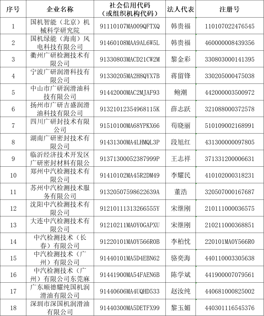 經我公司核實,國機智能(北京)機械科學研究院等下表18家公司及其下設(如有)各級控股及參股公司均與我公司及下屬企業(廣州機械科學研究院有限公司、廣研檢測(廣州)有限公司、廣州國機密封科技有限公司、中汽檢測技術有限公司、廣州國機潤滑科技有限公司等公司)無任何隸屬或股權關系,也不存在任何投資、合作、業務等關系,其一切行為均與我公司及下屬企業無關。